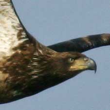 | Eagle Hunter Without a sound, an adult eagle descends from the sky at a speed approaching 40 miles per hour. Its outstretched wings, measuring over six feet from tip to tip, slow the bird’s high altitude descent, so that its two inch long razor sharp yellow talons can snatch the fish from the cormorant, before the unsuspecting bird can mount a retreat.(read more) |