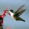 | Flight of Fancy The Ruby-Throated Hummingbird is a feisty creature. A scant three inches tall, the birds’ diminutive stature belies its fierce nature. Hovering in midair, two birds battle to determine which has the right to drink from the hanging feeder. The combatants duel by mirroring the others’ flight pattern, bobbing up and down, and circling one another in an impressive display of aerial ballet. Highly territorial, a hummingbird will attempt to drive a rival off with a barrage of shrill chirping. (read more) |