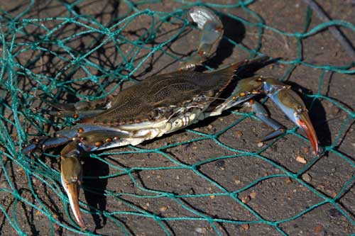 Crabbing is a fantastic family activity, but be warned that this crustacean is the angriest little monster you will ever drag from the water. It waves its blue colored claws in battle and backs down to nothing or no one. The pinch of even a small crab can bring an adult to their knees in pain. If you have never held a live crab, ask someone to demonstrate how to grab the crab properly so you can avoid its claws.